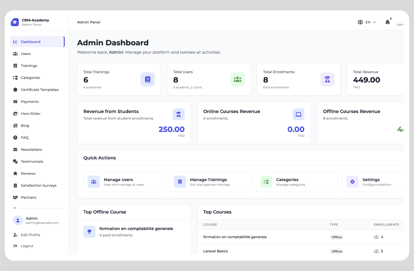 Je suis un Développeur Web PHP / Laravel passionné avec plus de 7 ans d’expérience dans le développement de solutions web sur mesure. Ma spécialité réside dans la création d’applications web robustes, performantes et évolutives, avec un accent particulier sur le développement back-end, notamment avec Laravel, mais aussi une bonne maîtrise des technologies front-end comme HTML5, CSS3, JavaScript, et React Native pour les applications mobiles.